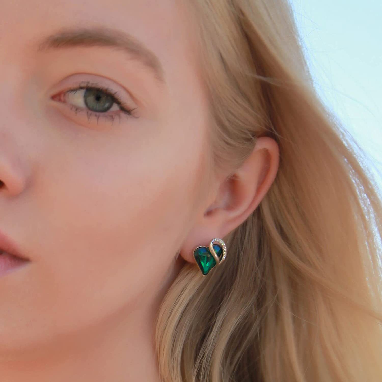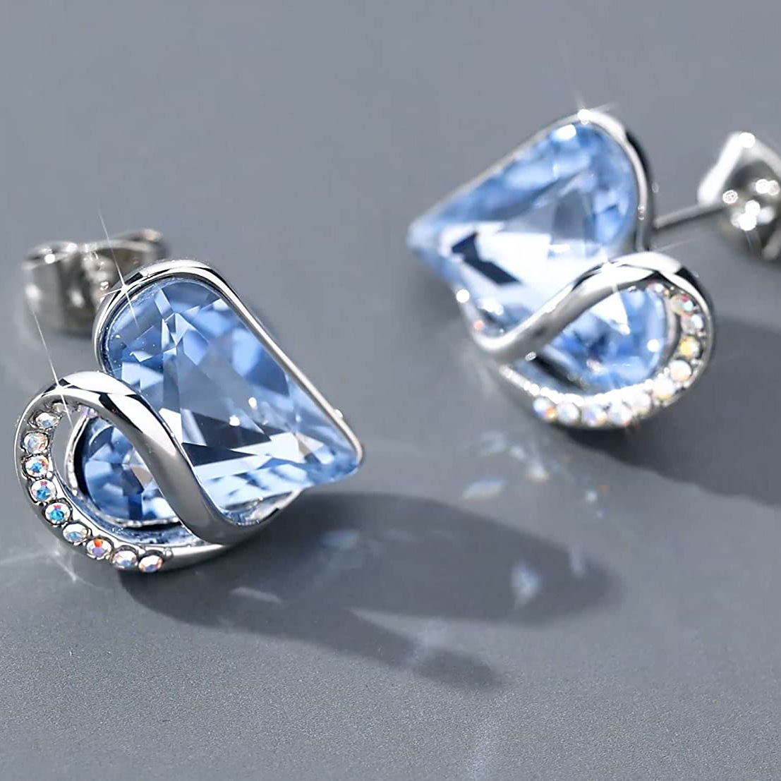 Ocean Heart Minimalist Earrings With Birthstone Accents